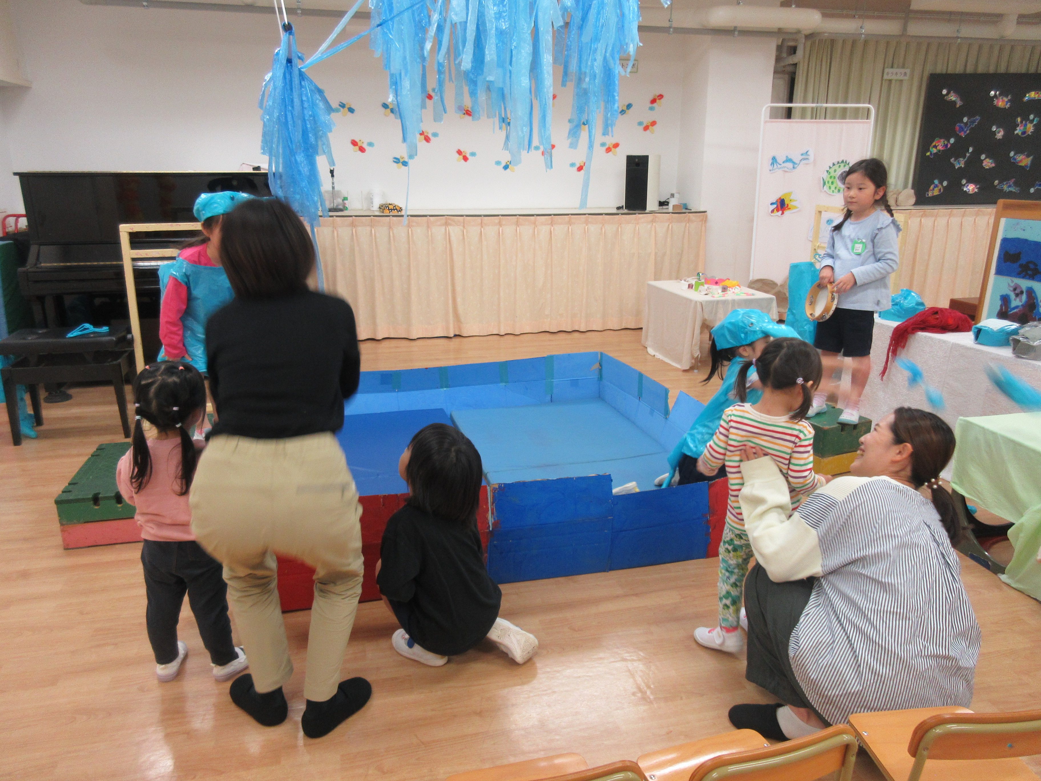 ひよこ組さんも作品展で年長組が作った「かえで水族館」で遊びました。